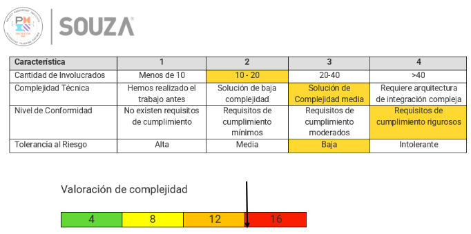 Cada nivel puede asignarse una ponderación para valorar la complejidad del proyecto (por ejemplo: 4, 8, 12, 16) y así definir el nivel de profundidad requerido en la gestión de riesgos.